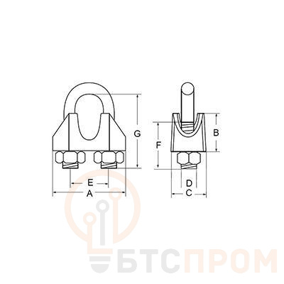 Зажим диаметром 3 мм предназначен для соединения стальных и синтетических тросов, канатов между собой, а также для изготовления петель на краях троса для фиксации и защиты прядей от раскручивания. Размер зажима определяется по диаметру троса. Зажим изготовлен из ковкого чугуна и стали с цинковым покрытием, которое образует защитный барьер на поверхности металла, предотвращающий появление коррозии. Оснащен двумя гайками. Данный зажим используется для статичного крепления грузов и не предназначен для грузоподъемных работ и других динамических нагрузок.