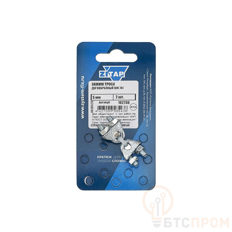 Зажим троса дугообразный 5 мм DIN 741 от бренда Tech-Krep/Zitar – это надежный и проверенный временем крепежный элемент, предназначенный для создания прочных и долговечных петлевых оконечностей на стальных тросах диаметром 5 мм. Изготовленный из высококачественной оцинкованной стали, зажим обладает повышенной коррозионной стойкостью, что обеспечивает длительный срок службы даже в условиях улицы и при повышенной влажности.