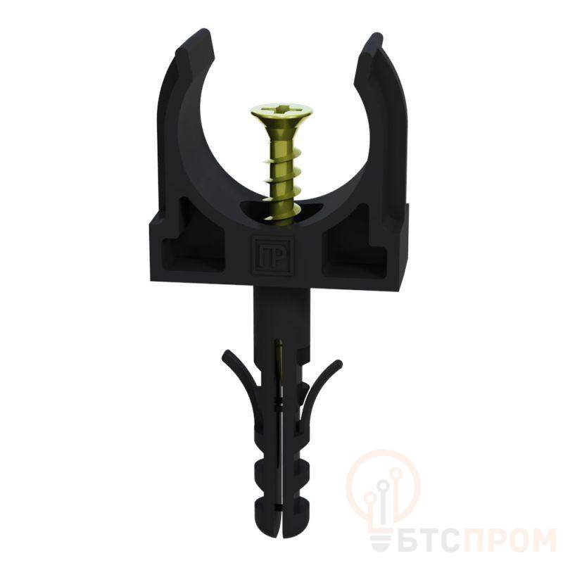 Держатель для труб (клипса) d20мм с дюбелем и саморезом черн. (уп.100шт) Промрукав PR13.0220 фото в каталоге от BTSprom.by