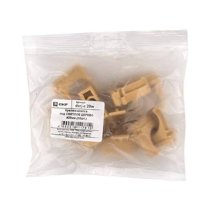 Держатель для труб (клипса) d20мм свет. дерево (уп.10шт) Plast EKF derj-z-20w фото в каталоге от BTSprom.by