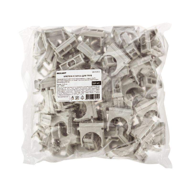 –Держатель для труб (клипса) d25мм пластик (уп.100шт) Rexant 28-0125-2