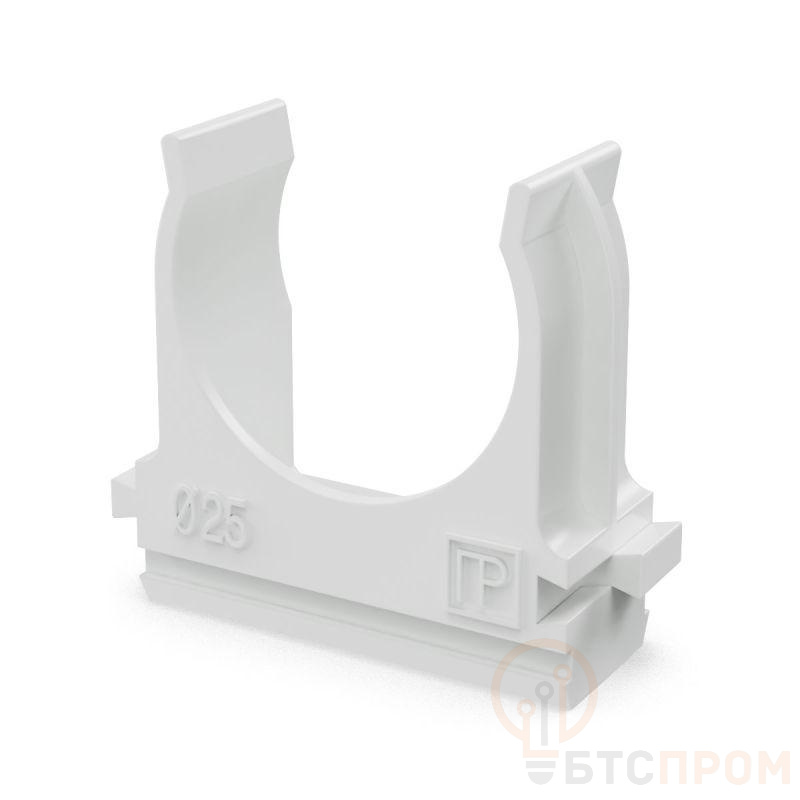 Держатель для труб (клипса) d25мм полистирол бел. (уп.100шт) Промрукав PR.02725б фото в каталоге от BTSprom.by