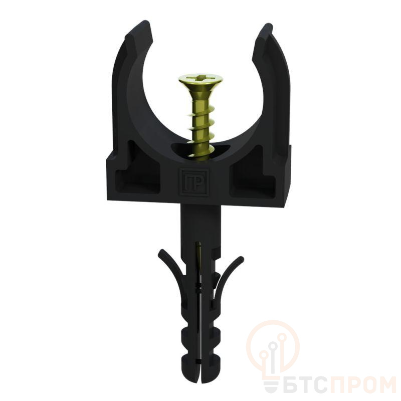 Держатель для труб (клипса) d32мм с дюбелем и саморезом черн. (уп.10шт) Промрукав PR13.0314 фото в каталоге от BTSprom.by
