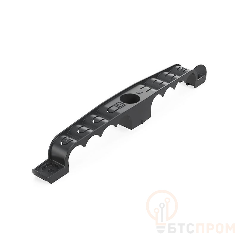 Держатель труб PR13.03289 предназначен для надежной фиксации труб диаметром 16 мм. Конструкция изделия позволяет осуществлять прямой двусторонний монтаж, обеспечивая крепление сразу на 8 мест, что значительно экономит время и пространство при сборке систем. Изделие выполнено из прочного черного пластика, устойчивого к воздействию внешних факторов.