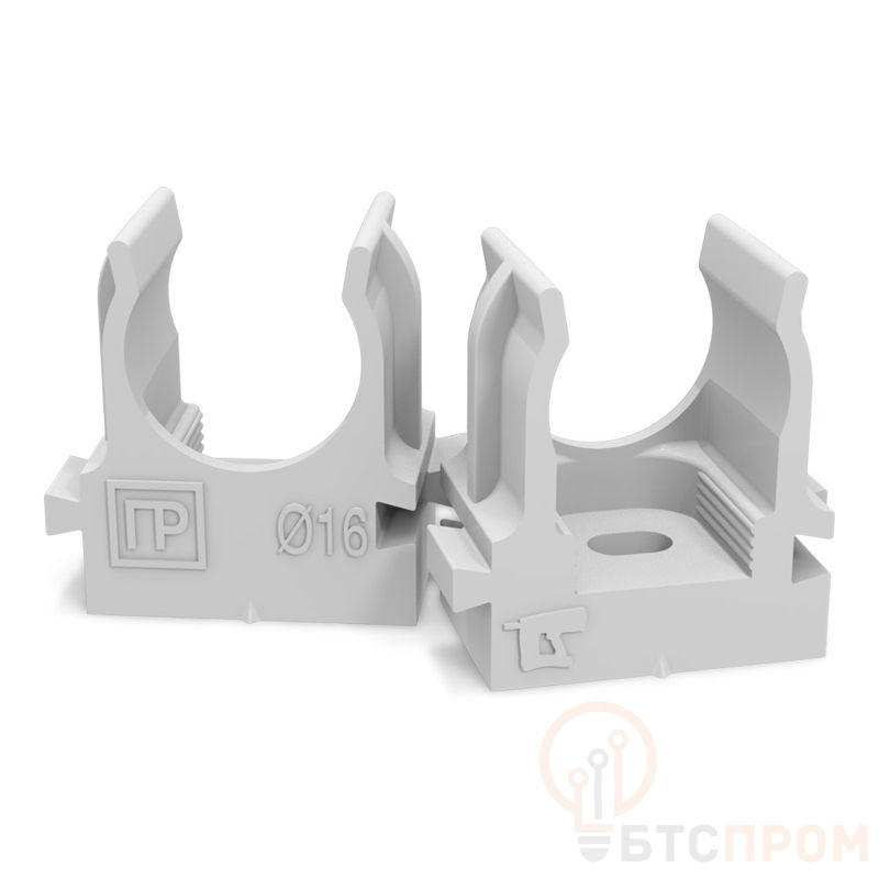 Держатель для труб (клипса) d16мм для прямого монтажа атмосферостойкая сер. в п/э Промрукав PR13.0401