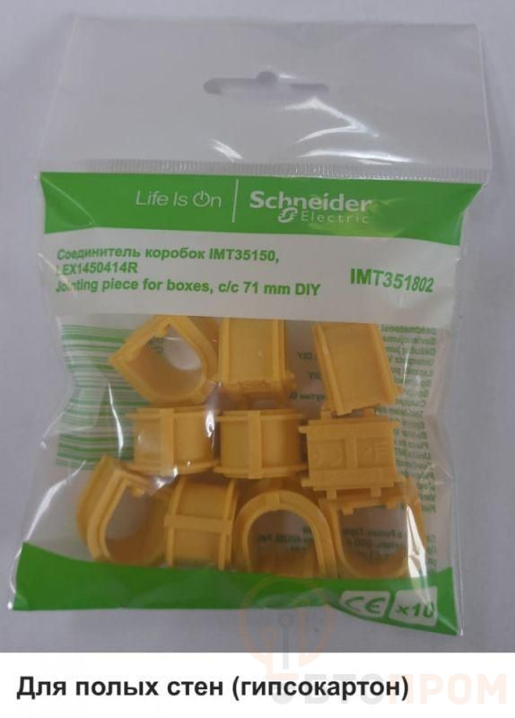 Соединители Systeme Electric (ранее Schneider Electric) предназначены для соединения монтажных коробок между собой и обеспечения расстояния 71 мм между центрами соединяемых коробок. Подходят к коробкам для полых стен IMT35150, IMT351501, IMT35151, IMT351511, IMT351581, LEX1450414R. Комплектация представляет собой пакет с десятью соединителями внутри и c отверстием для подвески на крючках. При заказе одной единицы вы получаете 1 пакет. Материал: полипропилен.