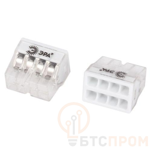 Быстрозажимные компактные клеммы <strong>2273 серии</strong> ЭРА предназначены для однократного подключения медных одножильных проводников без использования специального инструмента. Применяются для быстрого и удобного соединения и разводки проводников в распределительных коробках, а также для подключения осветительного и другого электрооборудования в условиях ограниченного пространства. Использование быстрозажимных компактных клемм 2273 серии позволяет: - быстро создать надёжное и долговременное соединение проводов за счёт механизма пружинной клеммы. - получить возможность легко и быстро подключить дополнительную цепь или устройство. - сэкономить дополнительное место в распределительной коробке или щитке, при этом соединение получиться аккуратным и надёжным. В случае применения клемм вне помещений, необходимо размещать их в герметичных монтажных коробках со степенью защиты не менее IP65. Особенности конструкции: - быстрозажимная конструкция пружинного механизма обеспечивает оперативный монтаж одножильных медных проводников сечением до 2.5 мм<sup>2</sup>. - компактный корпус поможет сэкономить до 40% пространства по сравнению с 773-й серией, упрощает работу в ограниченном пространстве. - изделия обладают тестовыми отверстиями, которые дают возможность измерения электрических параметров цепи соединения. - контактная токоведущая часть выполнена из высококачественной лужёной меди, что гарантирует хорошую электропроводность и низкий нагрев клеммы. - прозрачный корпус выполнен из поликарбоната и не поддерживает горение. Позволяет визуально контролировать правильность положения проводника в клемме, длину зачистки изоляции и состояние контакта. - прижимной механизм изготовлен из высококачественной легированной пружинной стали, обеспечивая надежный зажим проводника и стабильность характеристик при длительном использовании.