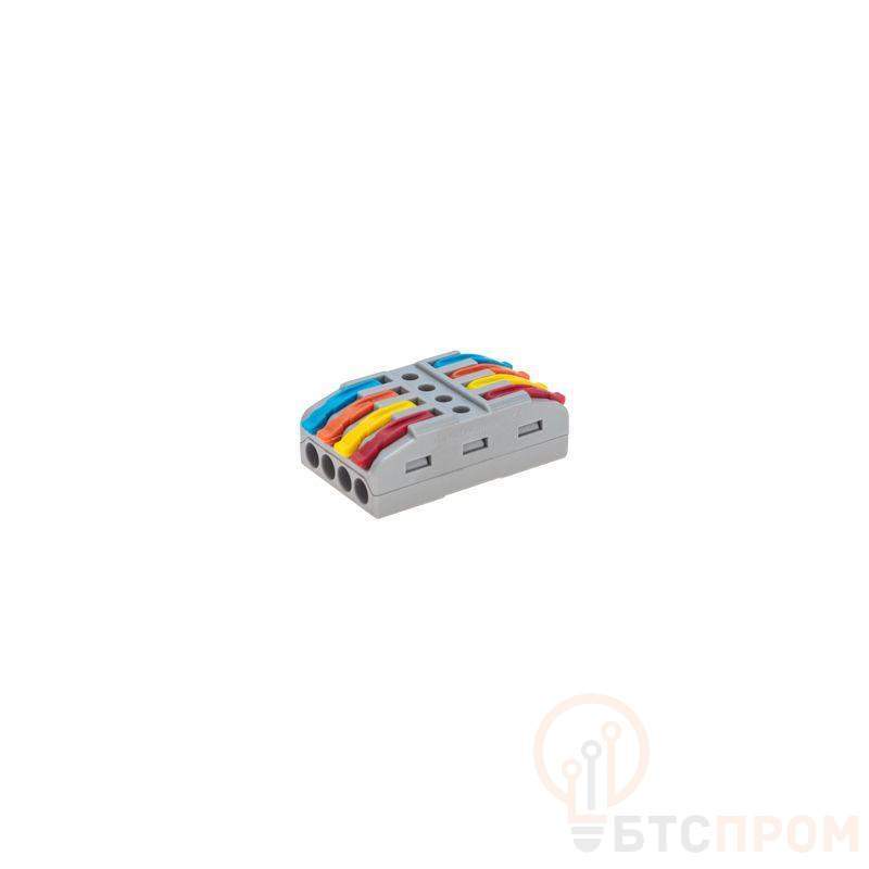 Многоразовые проходные клеммы REXANT предназначены для соединения медных одножильных и многожильных зачищенных проводников тонкого сечения. Состоит из 4 изолированных полюсов. Применяется для соединения или сращивания 4 пар проводов. Контакт осуществляется путем зажима проводника пластиной. Конструкция предотвращает случайное размыкание контакта. Специальное технологическое отверстие на корпусе клеммы предназначено для проверки соединения тестером-пробником или щупом мультиметра. Характеристики: Материал: Полиамид 66 Количество полюсов: 4 Материал контактов: луженая медь Зажим: сталь Цвет: серый Напряжение: 450 В Типы подключаемых проводов: одножильные, многожильные Ток: для одножильных проводов — 32 А, для многожильных проводов — 24 А Поддерживаемое сечение: 8x0.08-4 мм2 (одножильный провод), 8x0.2-2,5 мм2 (многожильный провод) Рабочая температура: –40...+85 °C Длина зачистки изоляции: 10 мм