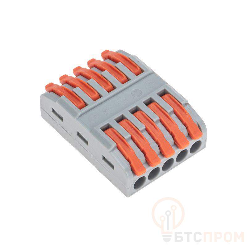 Многоразовые проходные клеммы REXANT предназначены для соединения медных одножильных и многожильных зачищенных проводников тонкого сечения. Состоит из 5 изолированных полюсов. Применяется для соединения или сращивания 5 пар проводов. Контакт осуществляется путем зажима проводника пластиной. Конструкция предотвращает случайное размыкание контакта. Специальное технологическое отверстие на корпусе клеммы предназначено для проверки соединения тестером-пробником или щупом мультиметра. Характеристики: Материал: Полиамид 66 Количество полюсов: 5 Материал контактов: луженая медь Зажим: сталь Цвет: серый Напряжение: 450 В Типы подключаемых проводов: одножильные, многожильные Ток: для одножильных проводов — 32 А, для многожильных проводов — 24 А Поддерживаемое сечение: 10x0.08-4 мм2 (одножильный провод), 10x0.2-2,5 мм2 (многожильный провод) Рабочая температура: –40...+85 °C Длина зачистки изоляции: 10 мм