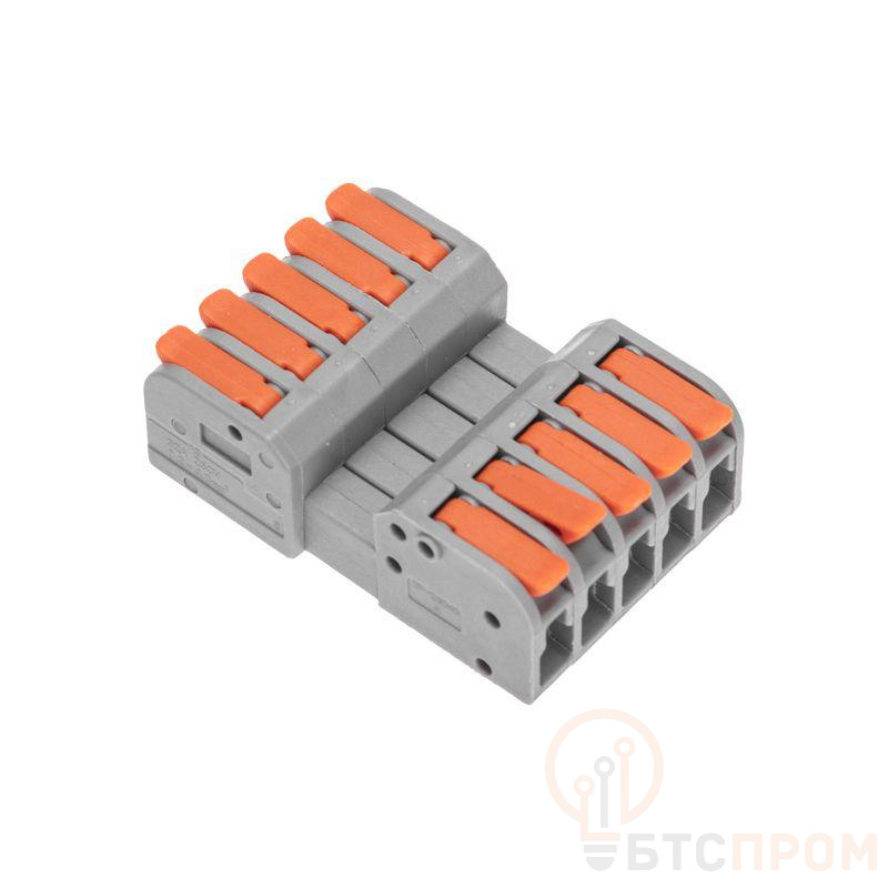 Многоразовая проходная клемма СМК REXANT с разъемным соединением предназначена для соединения медных одножильных и многожильных зачищенных проводников. Контакт осуществляется путем зажима проводника пластиной. Конструкция предотвращает случайное размыкание контакта. Характеристики: Материал: Полиамид 66 Количество полюсов: 5 Материал контактов: луженая медь Зажим: сталь Цвет: серый Напряжение: 250 В Типы подключаемых проводов: одножильные, многожильные Ток: для одножильных проводов — 32 А, для многожильных проводов — 24 А Поддерживаемое сечение: 10x0.2-4 мм2 (одножильный провод), 10x0.5-2,5 мм2 (многожильный провод) Рабочая температура: –40...+85 °C Длина зачистки изоляции: 10 мм