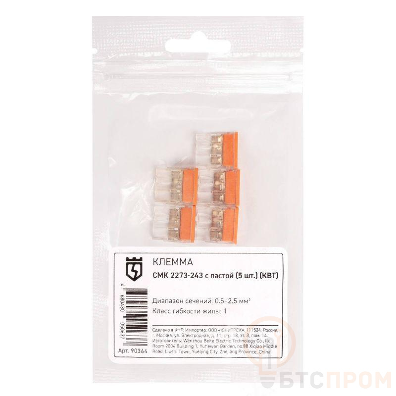Клемма СМК 2273-243 с пастой (уп.5шт) КВТ 90364 фото в каталоге от BTSprom.by