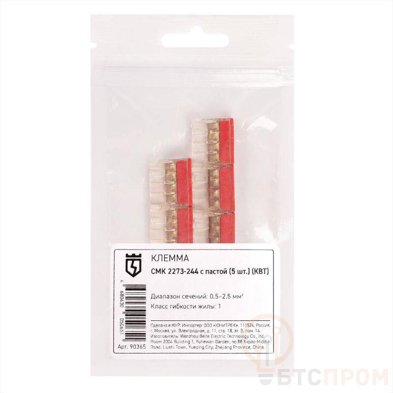 Клемма СМК 2273-244 с пастой (уп.5шт) КВТ 90365 фото в каталоге от BTSprom.by