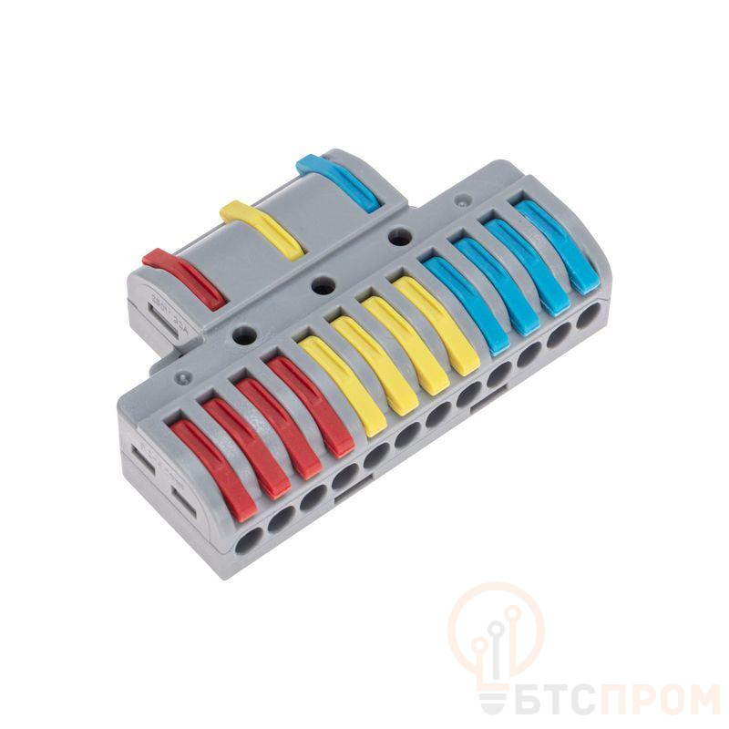 Многоразовая проходная разветвительная клемма REXANT предназначена для соединения медных одножильных и многожильных зачищенных проводников. Состоит из 3 изолированных полюсов. Применяется для разделения 3-жильных проводов на 4 направления. Контакт осуществляется путем зажима проводника пластиной. Конструкция предотвращает случайное размыкание контакта. Специальное технологическое отверстие на корпусе клеммы предназначено для проверки соединения тестером-пробником или щупом мультиметра. Для удобства использования разные фазы клеммы имеют уникальную цветовую разметку.
