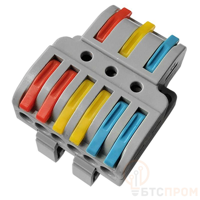 Клемма проходная разветвительная СМК 3x2D 3п на DIN-рейку 0.08-4кв.мм (1 ввод 2 вывода на полюс) сер. (уп.20шт) Rexant 07-5283