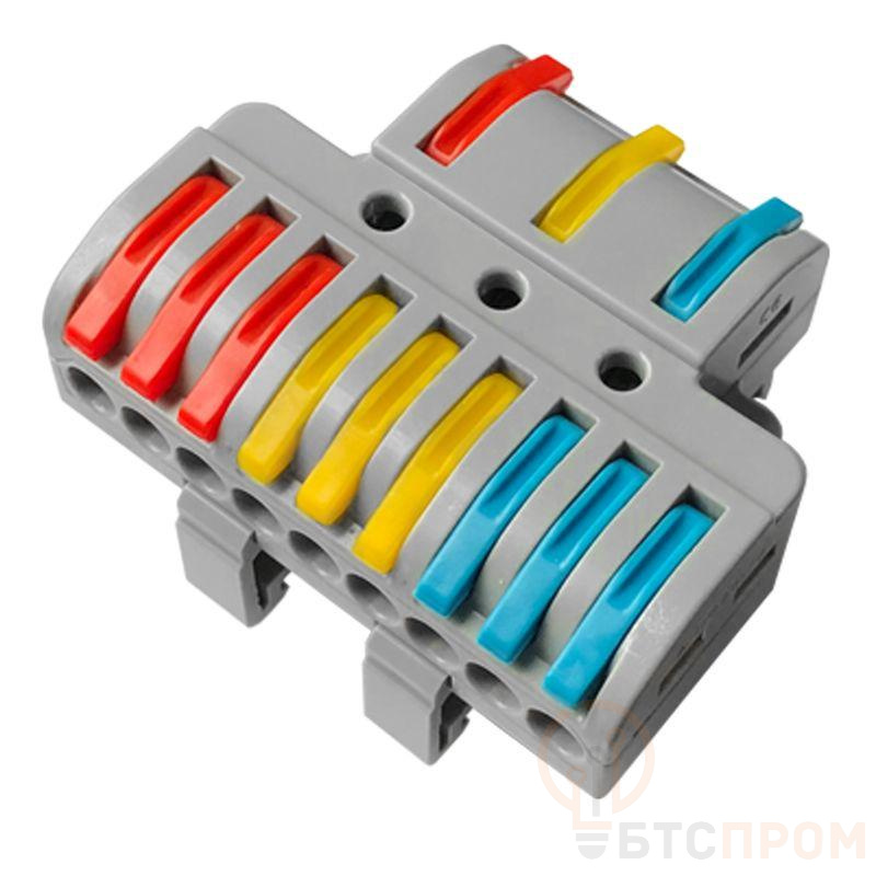Клемма проходная разветвительная СМК 3x3D 3п на DIN-рейку 0.08-4кв.мм (1 ввод 3 вывода на полюс) сер. (уп.15шт) Rexant 07-5284