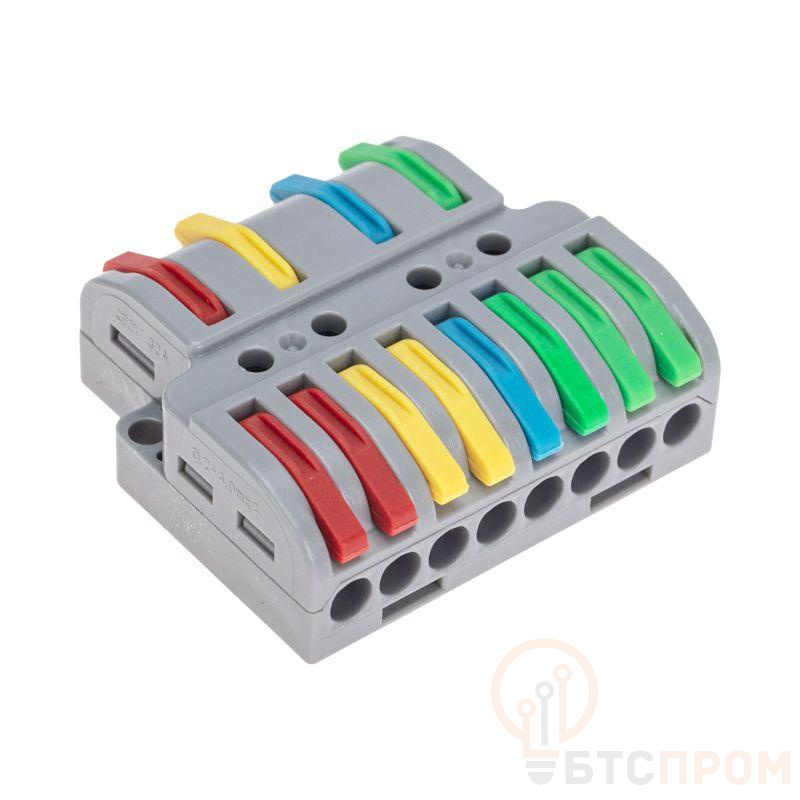 Многоразовая проходная разветвительная клемма REXANT предназначена для соединения медных одножильных и многожильных зачищенных проводников. Состоит из 4 изолированных полюсов. Применяется для разделения связки из 4 пар проводов на 2 направления. Контакт осуществляется путем зажима проводника пластиной. Конструкция предотвращает случайное размыкание контакта. Специальное технологическое отверстие на корпусе клеммы предназначено для проверки соединения тестером-пробником или щупом мультиметра. Для удобства использования разные фазы клеммы имеют уникальную цветовую разметку.