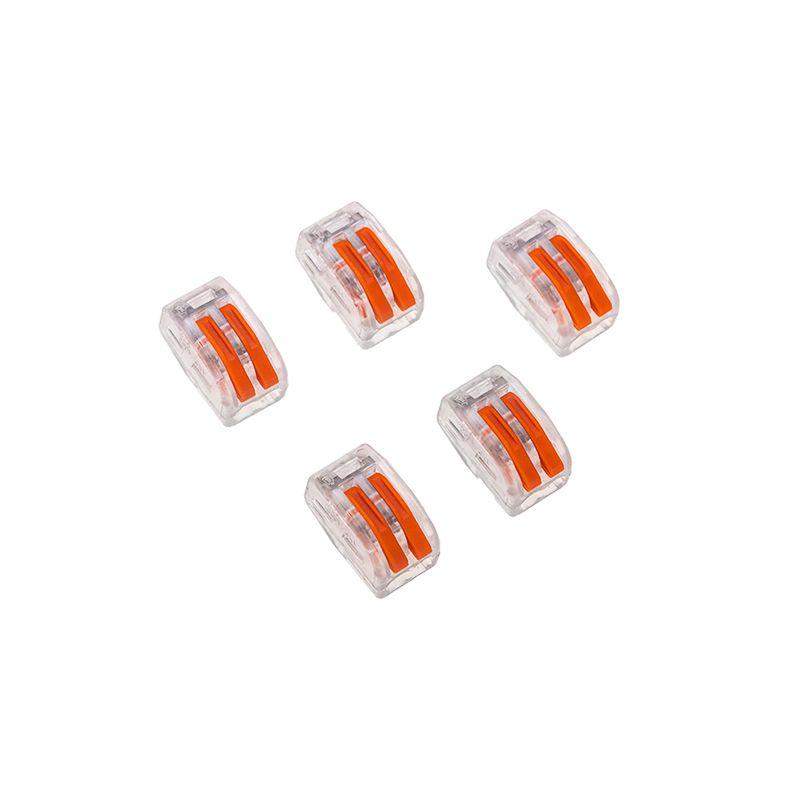 Соединительная многоразовая клемма на 2 проводника с плоско-пружинным зажимом предназначена для подсоединения медных одножильных и многожильных проводников тонкого сечения. Клемма изготовлена из полиамида 66, имеет 2 контакта, цвет корпуса прозрачный, напряжение 400 В. Ток для одножильных проводов - 32А, для многожильных проводов - 24А 28-12 AWG Поддерживаемое сечение: 0.08-4мм2 (одножильный провод), 0.08-2.5мм2 (многожильный провод) Рабочая температура: -40?C to +85?C