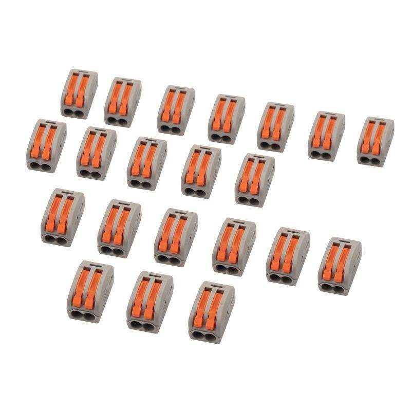 Соединительная многоразовая клемма на 2 проводника с плоско-пружинным зажимом предназначена для подсоединения медных одножильных и многожильных проводников тонкого сечения. Отличается двумя рычажками для комфортного соединения двух проводников. Материал корпуса: полиамид 66 Типы подключаемых проводов: одножильные, многожильные. Количество контактов: 2 Цвет: серый Напряжение: 400 В Ток: для одножильных проводов – 32 А, для многожильных проводов – 24 А 28-12 AWG Поддерживаемое сечение: 0.08-4 мм2 (одножильный провод), 0.08-2.5 мм2 (многожильный провод) Рабочая температура: -40…+85 °C