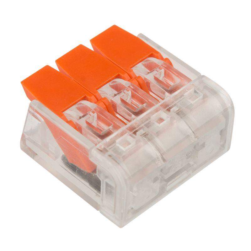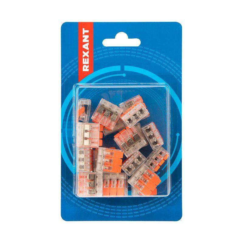 Клемма соединительная рычажковая компактная 3-проводная прозрачная (0.14-4кв.мм) (уп.20шт) Rexant 07-5203-20