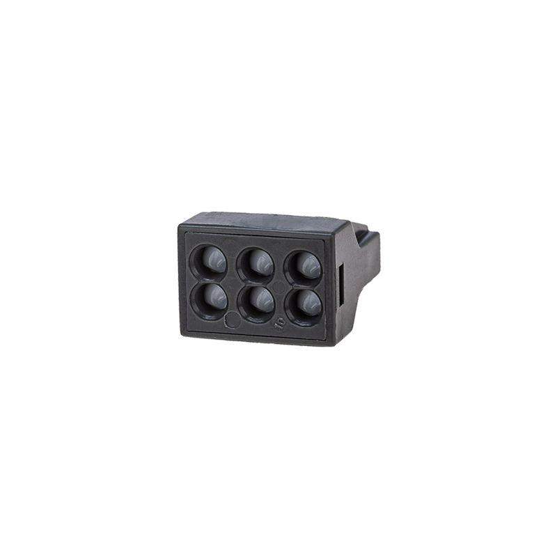 Электромонтажные экспресс-клеммы предназначены для соединения 6 проводов между собой (алюминиевые и медные как одножильные, так и многожильные). Подключение осуществляется способом проталкивания до упора очищенного от изоляции провода в свободное гнездо. Клеммы наполнены специальной контактной пастой, которая создает барьер для попадания влаги внутрь разъёма, а так же препятствует окислению проводников. Клемма имеет 6 контакта, напряжение 400 В, Максимальным током 24А, Поддерживаемое сечение: от 1,0 до 2,5 мм2. Рабочая температура: -45?C to +80?C