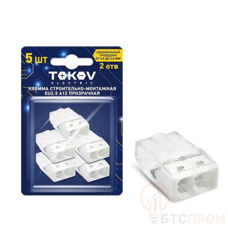 Клемма строительно-монтажная СМК 2273-202 EU2.5 412 2-проводная прозр. (блист.5шт) TOKOV ELECTRIC TKE-EU2.5-412/BL5