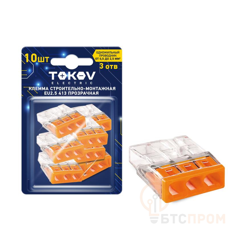 Клемма строительно-монтажная СМК 2273-203 EU2.5 413 3-проводная прозр. (блист.10шт) TOKOV ELECTRIC TKE-EU2.5-413/BL10