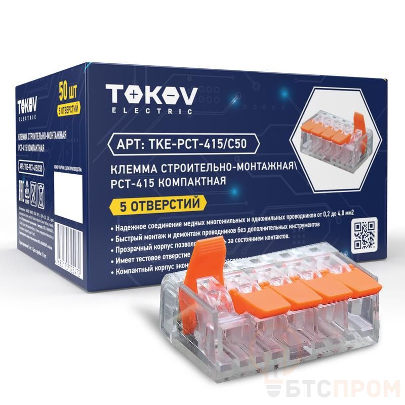Клемма строительно-монтажная СМК компактная 221-415 PCT-415 5-проводная TOKOV ELECTRIC TKE-PCT-415/C50