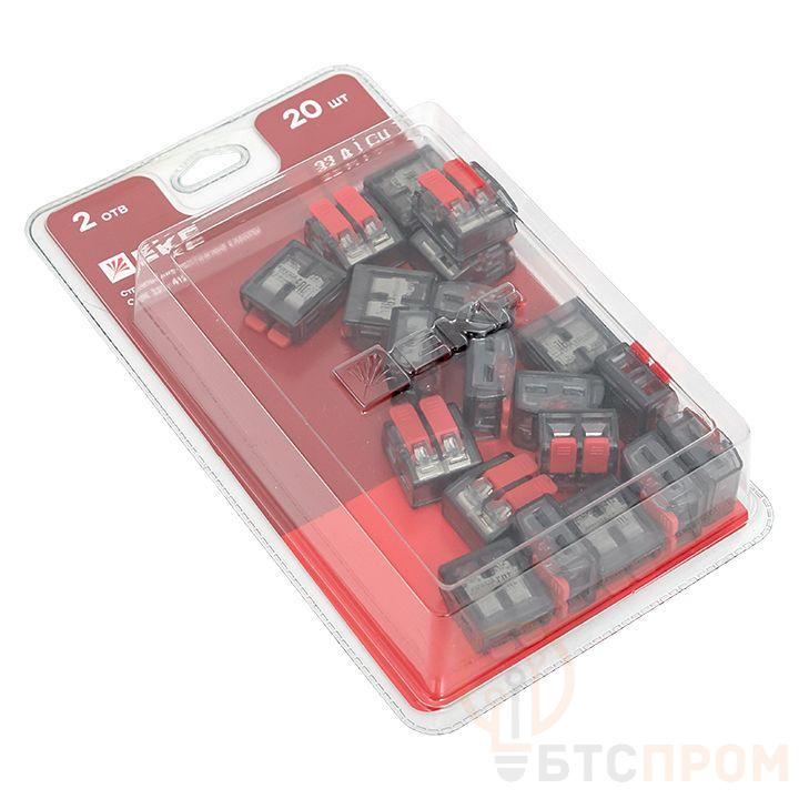 Клемма строительно-монтажная СМК 221-412 с рычагом 2 отверстия 0.2-4.0кв.мм (блист.20шт) PROxima EKF plc-smk-221-412b-20