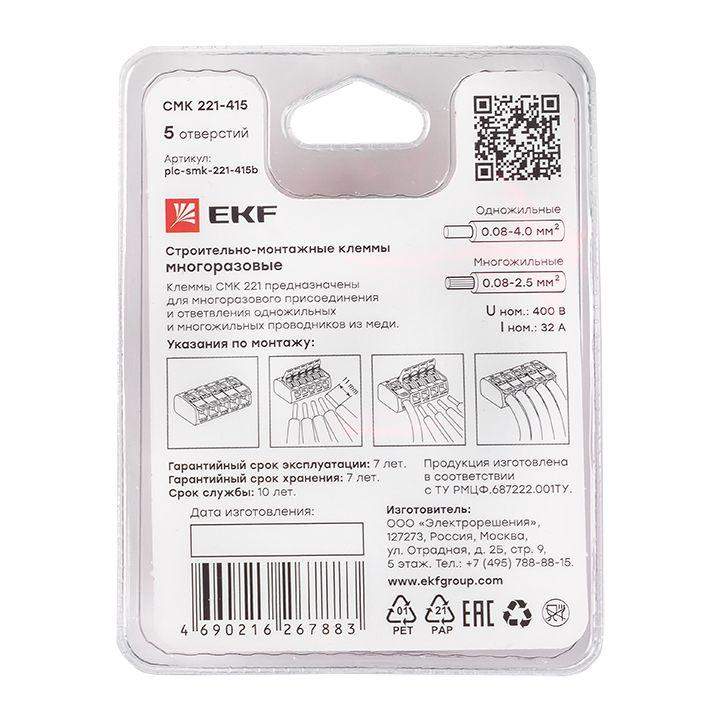 Клемма строительно-монтажная СМК 221-415 5-проводная 0.2-4кв.мм (блист.5шт) PROxima EKF plc-smk-221-415b