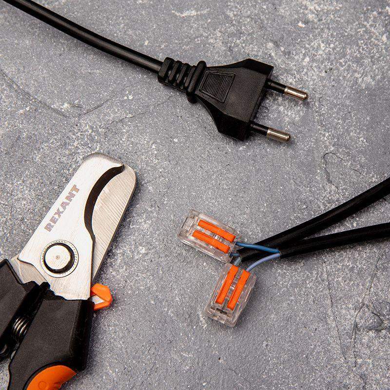 Соединительная многоразовая клемма REXANT на 2 проводника с плоско-пружинным зажимом в прозрачном корпусе предназначена для подсоединения медных одножильных и многожильных проводников тонкого сечения. Перед монтажом с соединяемых проводников необходимо снять изоляцию в соответствии с обозначениями на корпусе клеммы (9-12 мм). Зачищенный участок с монтажной стороны не должен иметь сильных изгибов. Вставьте его в свободное гнездо клеммы, предварительно подняв оранжевый рычажок, после этого опустите рычажок в исходное положение. Контакт осуществляется путем зажима проводника пластиной. Конструкция предотвращает случайное размыкание контакта. Специальное технологическое отверстие на корпусе клеммы предназначено для проверки соединения тестером-пробником или щупом мультиметра. Оболочка из прозрачного пластика делает контакт изолированным, а также позволяет визуально оценить положение проводника. Извлечение проводника (демонтаж) осуществляется действиями в обратном порядке. Характеристики: Размер: 12.4x14.5x20.5 мм Материал: Полиамид 66 Количество контактов: 2 Материал контактов: луженая медь Зажим: сталь Цвет: прозрачный Напряжение: 400 В Материал подключаемых проводов: Cu Типы подключаемых проводов: одножильные, многожильные Ток: для одножильных проводов — 32 А, для многожильных проводов — 24 А\28-12 AWG Поддерживаемое сечение: 2x0.08-4 мм2 (одножильный провод), 2x0.08-2.5 мм2 (многожильный провод) Рабочая температура: –40...+85 ?C
