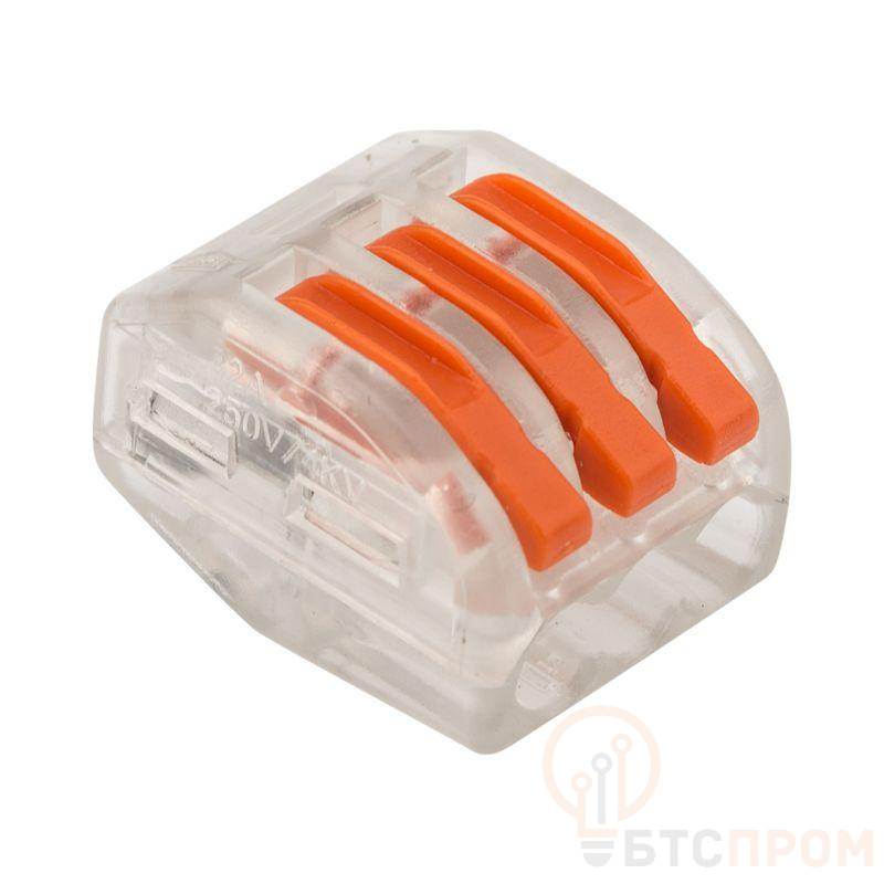 Клемма строительно-монтажная СМК 222-413 3-проводная 0.08-2.5/4кв.мм прозр. (уп.50шт) Rexant 07-5253-1