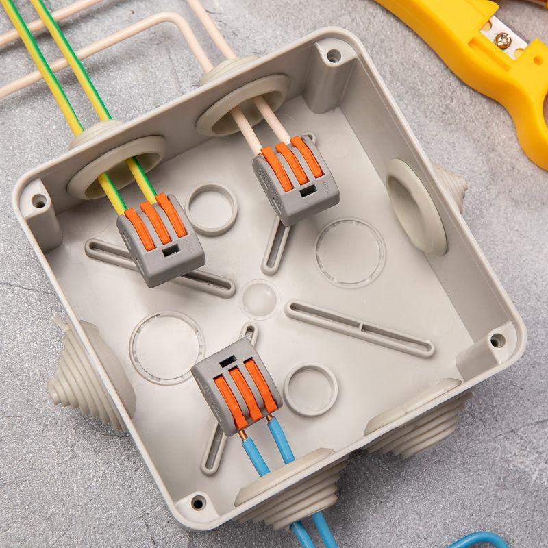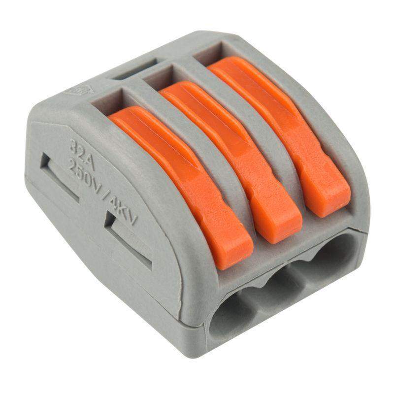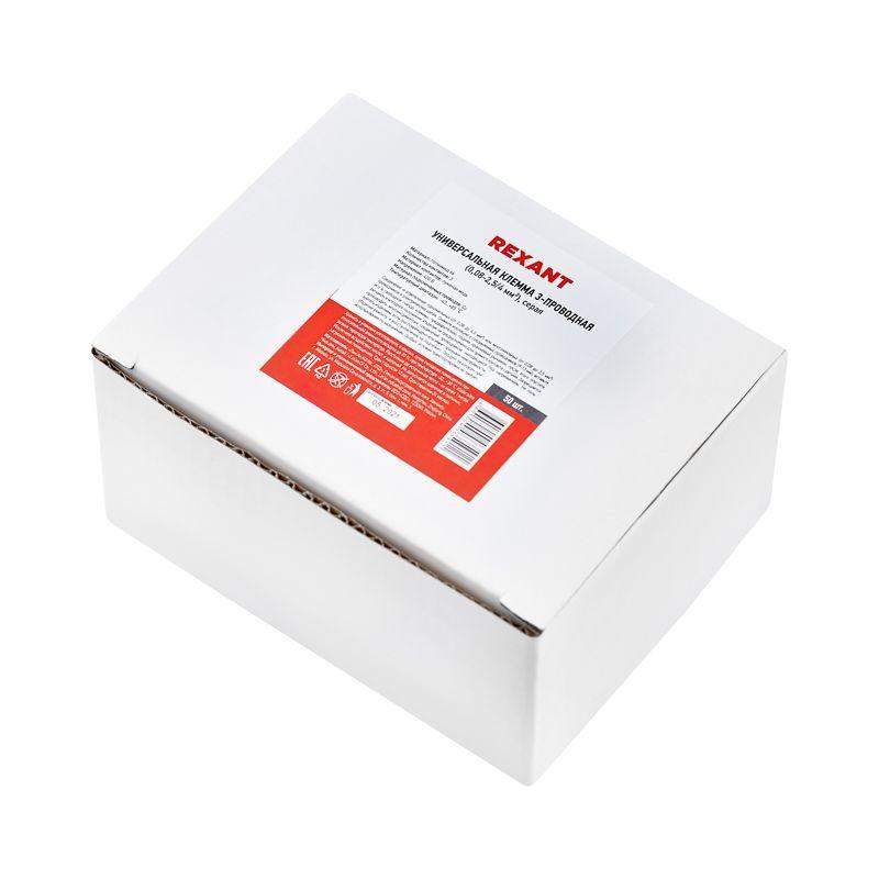 Соединительная многоразовая клемма REXANT с плоско-пружинным зажимом предназначена для соединения медных одножильных и многожильных зачищенных проводников тонкого сечения. Перед монтажом с соединяемым проводником необходимо снять изоляцию в соответствии с обозначениями на корпусе клеммы. Зачищенный участок с монтажной стороны не должен иметь сильных изгибов. Проводник вводится в свободное гнездо клеммы с предварительно поднятым оранжевым рычажком, после чего рычаг опускается в исходное положение. Контакт осуществляется путем зажима проводника пластиной. Конструкция предотвращает случайное размыкание контакта. Специальное технологическое отверстие на корпусе клеммы предназначено для проверки соединения тестером-пробником или щупом мультиметра. Корпус из пластика делает контакт изолированным. Извлечение проводника (демонтаж) осуществляется перечисленными действиями в обратном порядке. Характеристики: Размер: 17x14.5x20.5 мм Материал: полиамид Количество контактов: 3 Материал контактов: луженая медь Зажим: сталь Цвет: серый Напряжение: 400 В Материал подключаемых проводов: Cu (медь) Типы подключаемых проводов: одножильные, многожильные Ток для одножильных проводов: 32 А Ток для многожильных проводов: 24 А Классификация по AWG: 28-12 Поддерживаемое сечение для одножильного провода: 3x0.08-4 мм2 Поддерживаемое сечение для многожильного провода: 3x0.08-2.5 мм2 Рабочая температура: -40...+85 ?C Количество в упаковке: 50 шт. Преимущества: Простой и быстрый монтаж/демонтаж соединения Безопасное подключение без использования специальных инструментов Компактные размеры Удобная форма Наличие гнезда для проверки соединения