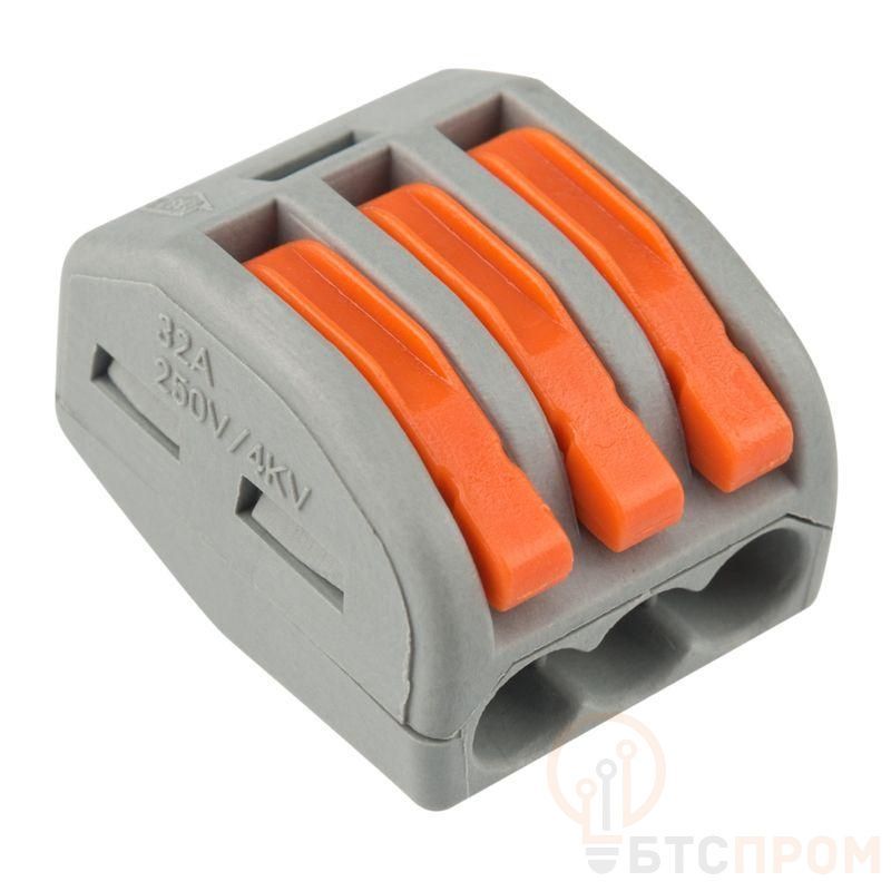 Клемма строительно-монтажная СМК 222-413 3-проводная 0.08-2.5/4кв.мм сер. (уп.50шт) Rexant 07-5253-4