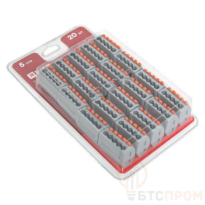 Клемма строительно-монтажная СМК 222-415 с рычагом 5 отверстий (блист.20шт) PROxima EKF plc-smk-415b-20