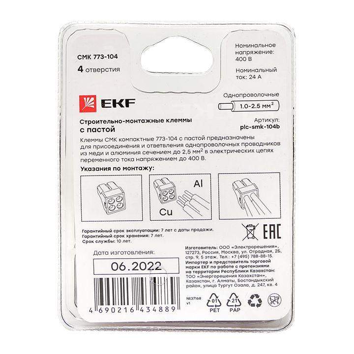 Клемма строительно-монтажная СМК 773-104 4-проводная 1.0-2.5кв.мм (блист.5шт) PROxima EKF plc-smk-104b