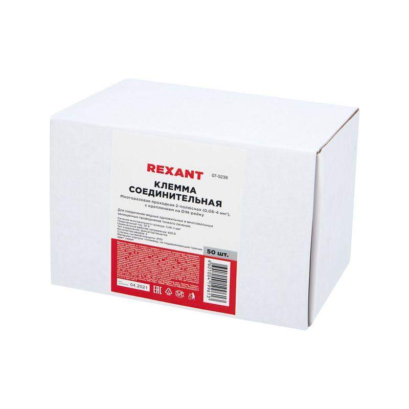 Клемма строительно-монтажная СМК проходная 222-422D 2п 0.08-4кв.мм с креплением на DIN-рейку сер. (уп.50шт) Rexant 07-5239
