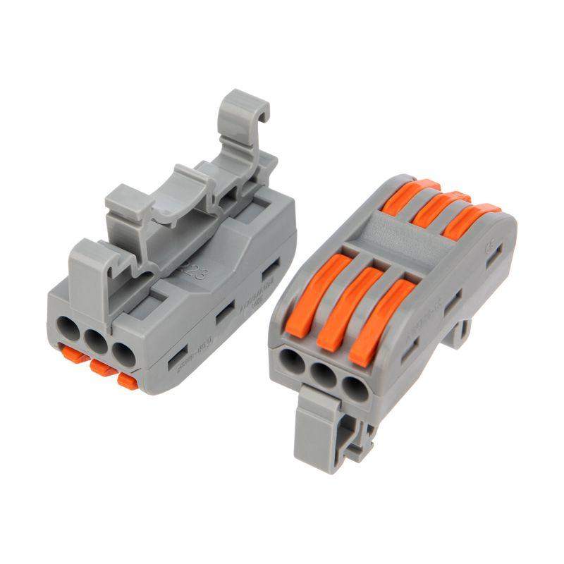 Клемма строительно-монтажная СМК проходная 222-423D 3п 0.08-4кв.мм с креплением на DIN-рейку сер. (уп.5шт) Rexant 07-5238-05