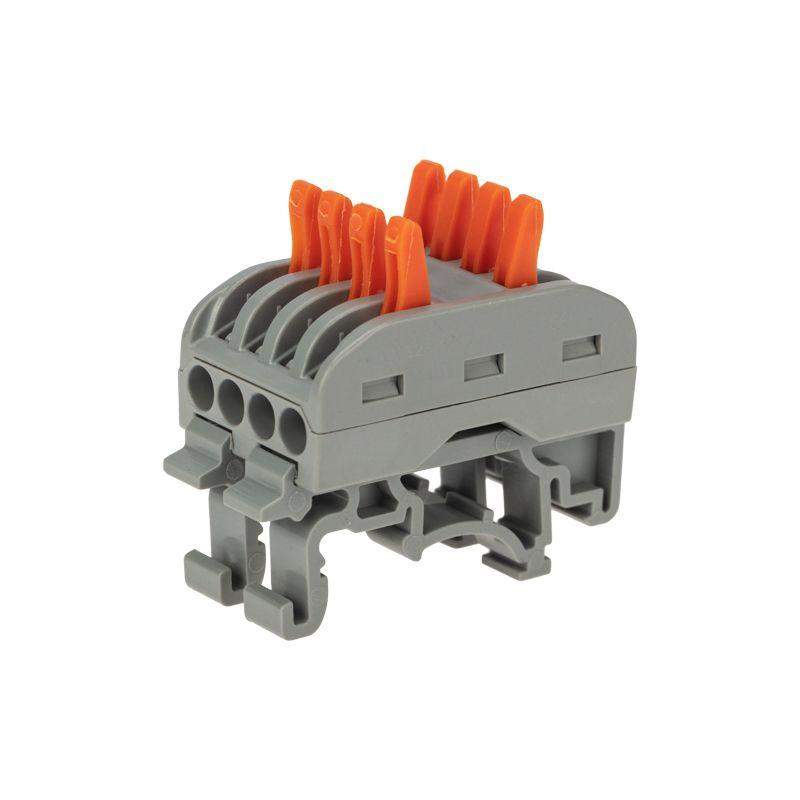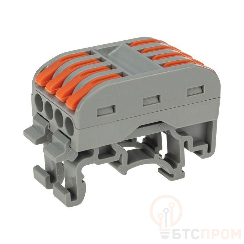 Клемма строительно-монтажная СМК проходная 222-424D 4п 0.08-4кв.мм с креплением на DIN-рейку сер. (уп.50шт) Rexant 07-5237