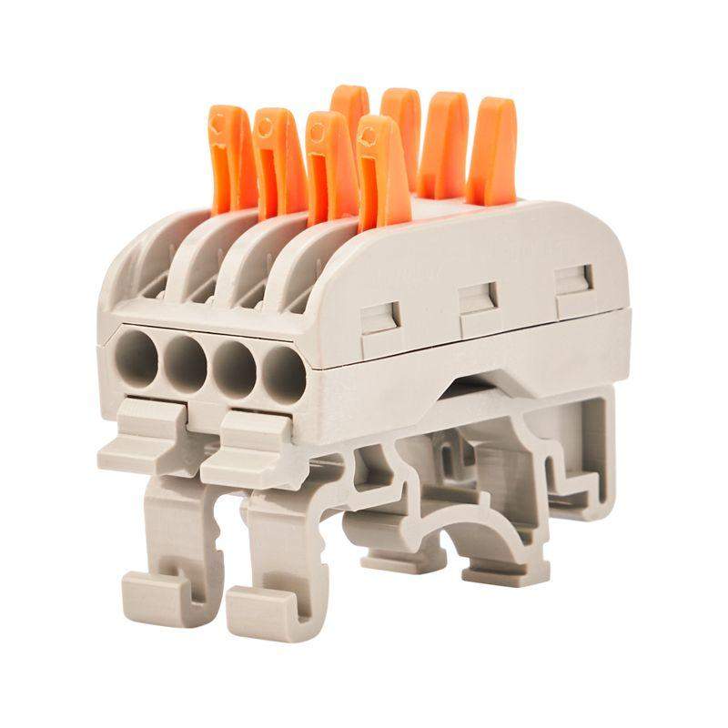Клемма строительно-монтажная СМК проходная 222-424D 4п 0.08-4кв.мм с креплением на DIN-рейку сер. (уп.4шт) Rexant 07-5237-04