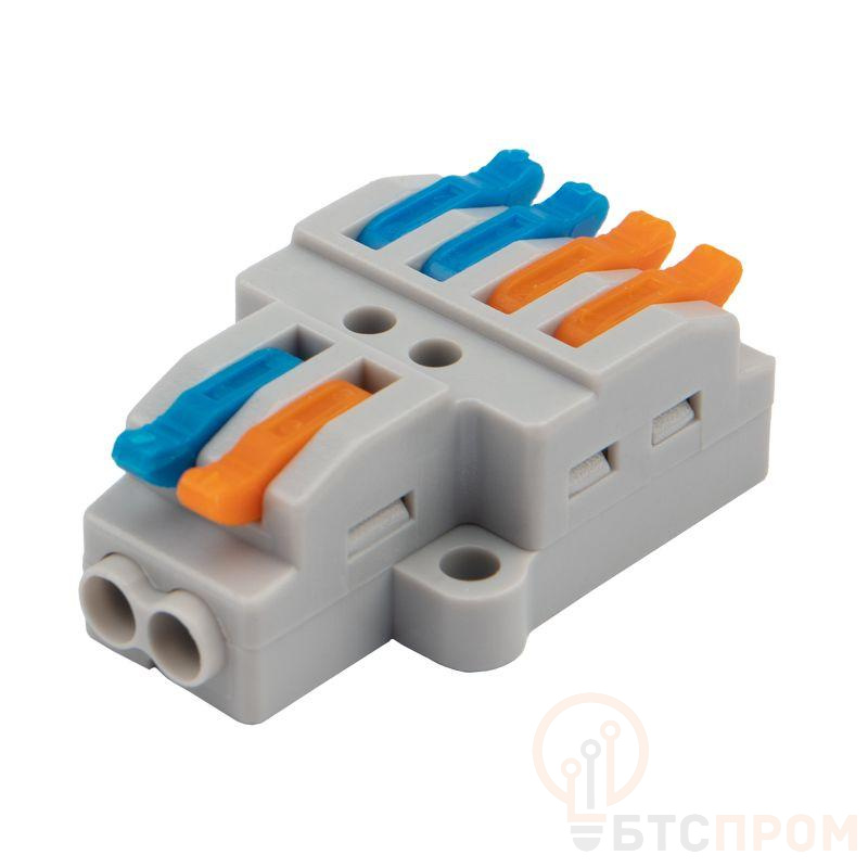 Клемма строительно-монтажная СМК проходная разветвительная 2х2 2п с монтажной площадкой 1 ввод 2 вывода на полюс (уп.50шт) Rexant 07-5235