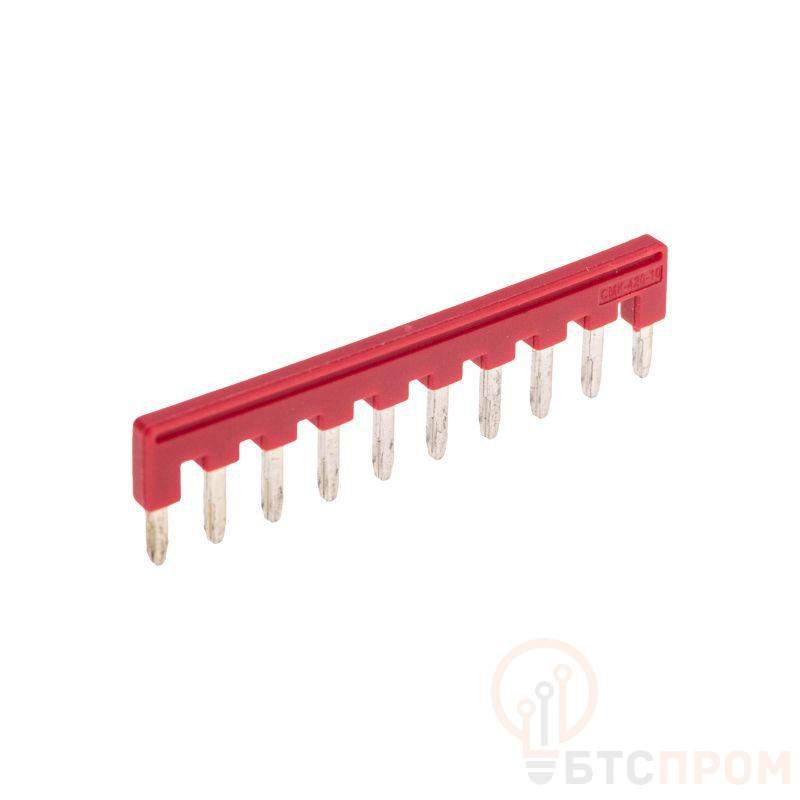 Перемычки гребенчатые используются для электрического соединения рядов клемм СМК в системах распределения щитового оборудования. Устанавливаются в соответствующие пазы клеммы СМК 222-421D. Изготовлены из цельных медных пластин с 2, 3 или 10 выводами типа PIN, установленными в изоляторе. Характеристики: Материал: Полиамид 66 Количество контактов: 10 Материал контактов: луженая медь Напряжение: 450 В Ток: для одножильных проводов — 32 А, для многожильных проводов — 24 А Рабочая температура: –40...+85 °C