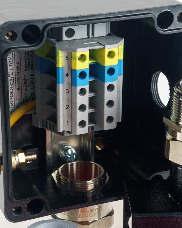 • Маркировка взрывозащиты по газу 1Ex e IIC T6…T4 GbX