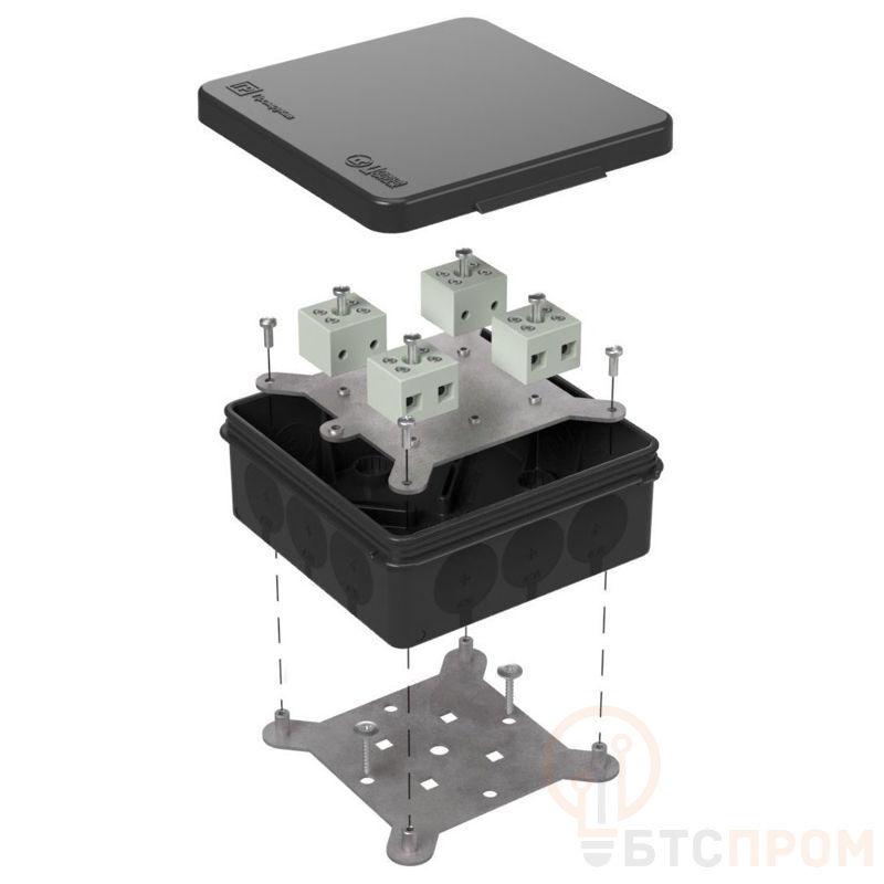 Коробка огнестойкая ОП двухкомпонентн. 60-0303-9005-FR6.0-8 Е15-Е120 100х100х40 Промрукав 60-0303-9005-FR6.0-8