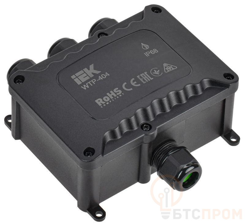 Коробка распределительная герметичная WTP-404 IP68 для открытой установки предназначена для защиты мест коммутации зажимами разных типов, разветвления проводов и кабелей при наружной и внутренней прокладке электропроводки. Имеет 4 кабельных ввода для типа М20.