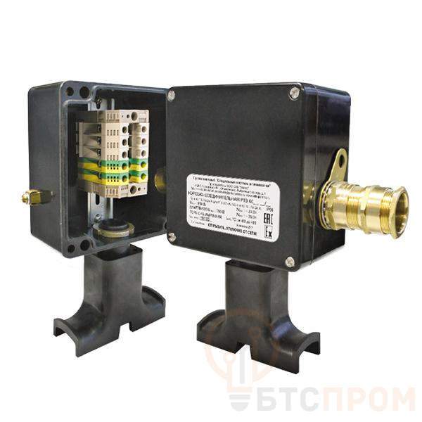 Коробка РТВ 605 предназначена для подключения к силовой сети электрических нагревательных кабелей постоянной мощности типа СНФ и ТМФ. Коробка комплектуется устройством ввода под теплоизоляцию и крепится непосредственно на поверхность трубопровода, резервуара. Коробка позволяет выполнить подключение одной или двух секций нагревательного кабеля «петлей», либо трёх секций по схеме «звезда». Конструкция корпуса обеспечивает защиту от проникновения влаги и пыли IP66 и высокую коррозионную стойкость. Кабельные вводы коробки предназначены для подключения небронированных силовых кабелей диаметром от 14 до 25 мм и бронированных силовых кабелей диаметром от 17 до 26,3 мм. Применяемые клеммные наборы позволяют обеспечить подключение многожильных или одножильных проводов сечением от 1,5 до 16 кв.мм для коробок с винтовым клемным набором и до 10 кв.мм для коробок с пружинным клемным набором. Для заказов доступны исполнения коробок с винтовыми или пружинными клеммными зажимами. Особенность Эффективное решение для подключения питания и ввода под теплоизоляцию электрического нагревательного кабеля постоянной мощности типа СНФ и ТМФ Применяется для всех кабелей типа СНФ и ТМФ Исключает риск повреждения нагревательных лент в местах заделки Имеет сертификат соответствия для применения во взрывоопасных зонах Все необходимые комплектующие входят в состав коробки Широкий спектр решаемых задач Быстрый и простой монтаж Высокая термостойкость ?Не подвергается коррозии
