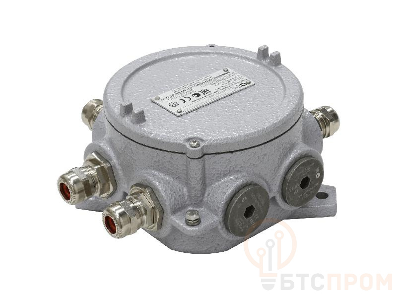 Коробки соединительные серии LTJB-IIC-RM предназначена для соединения или разветвления бронированных и не бронированных кабелей с оболочкой круглого сечения с медными или алюминиевыми жилами в цепях переменного и постоянного тока электроустановок предприятий нефтегазовой и нефтехимической отрасли. Взрывозащита обеспечивается видами защиты «взрывонепроницаемая оболочка «d», «оборудование с видом взрывозащиты от воспламенения пыли «t». Зоны применения: по газу – 1, 2; по пыли – 21, 22 по ГОСТ Р МЭК 60079. Болтовое соединение на плоской поверхности. Корпус коробки выполнен из литого под давлением алюминиевого сплава без примесей меди. Коробка состоит из корпуса и крышки, образующих взрывозащищенное резьбовое соединение, контрящееся стопорным винтом. Коробка окрашена порошковой краской, цвет RAL 7040. Внутри корпуса установлена DIN-рейка TS15 с клеммными зажимами. На боковых сторонах коробки могут устанавливаться взрывозащищенные кабельные вводы с присоединительной резьбой М20х1,5 или М25х1,5 под различные типы кабеля. Все крепежные и монтажные элементы выполнены из коррозионно стойкой стали.