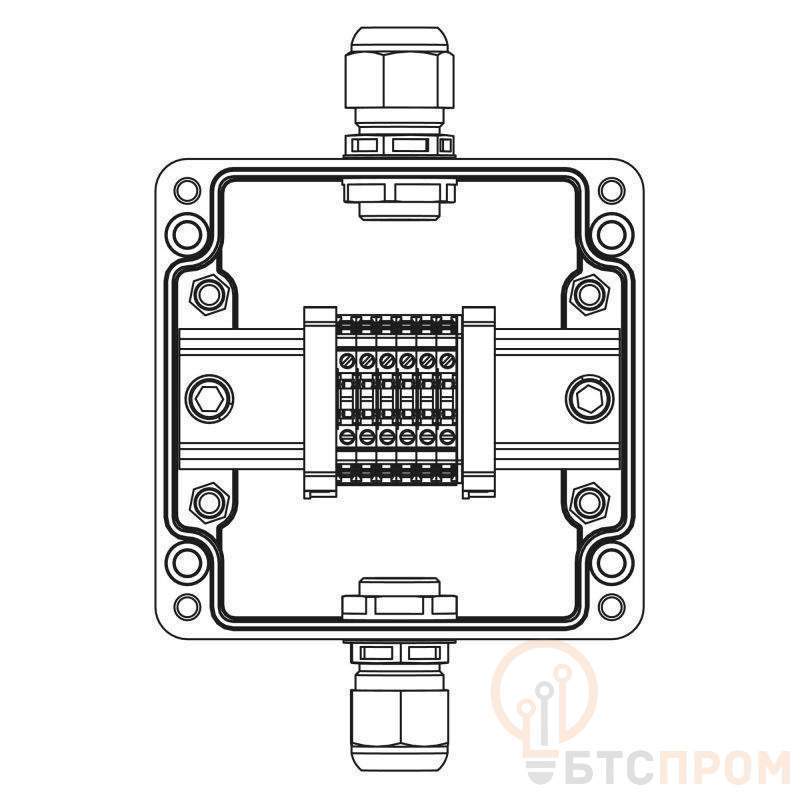 Взрывозащищенная клеммная коробка из полиэстера TBE-P-03-(6хCBC.2)-1хPABMP(A)-1хPABMP(C)1Eх e IIC Т5 Gb / Eх tb IIIC T95°C Db IP66 Un=500 В, In=24 А Взрывозащищенная клеммная коробка GRP 120х120х90мм 1Eх e IIC Т5 Gb / Eх tb IIIC T95°C Db IP66 Температурный режим Т5 40°C Количество клемм: CBC.2 6 шт. Ток А Вводы Сторона А: Взрывозащищенный полиамидный кабельный ввод, небронированный кабель M20х1,5 D7-12мм. IP66/68 1 шт. Сторона C: Взрывозащищенный полиамидный кабельный ввод, небронированный кабель M20х1,5 D7-12мм. IP66/68 1 шт.
