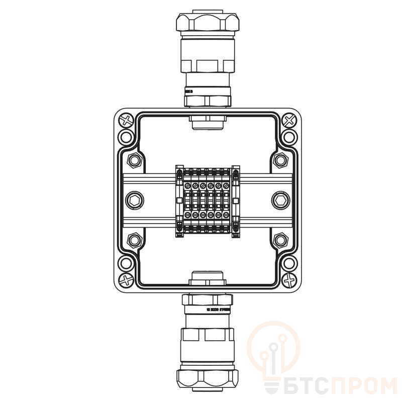 TBE-P-03-(6xCBC.2)-1x6018ANP22BKM2SB(A)-1x6018ANP22BKM2SB(C)1Ex e IIC Т5 Gb / Ex tb IIIC T95°C Db IP66/КЗ Un=500 В, In=24 А Взрывозащищенная клеммная коробка GRP 120x120x90мм 1Ex e IIC Т5 Gb / Ex tb IIIC T95°C Db IP66 Температурный режим Т5 40°C Кольца заземления Количество клемм: CBC.2 6 шт. Ток А Вводы Сторона А: Взрывозащищенный кабельный ввод ANP под небронированный кабель в металлорукаве M20х1,5 D8-13мм, Dn20мм. Никелированная латунь.IP66/68 1шт. Сторона C: Взрывозащищенный кабельный ввод ANP под небронированный кабель в металлорукаве M20х1,5 D8-13мм, Dn20мм. Никелированная латунь.IP66/68 1шт.