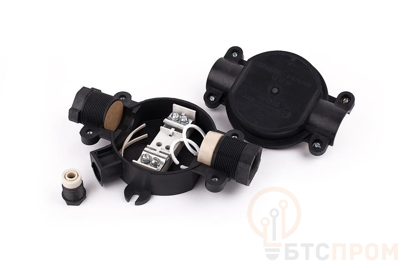 Коробка КОС 2 У2 предназначена для выполнения ответвлений к светильникам с лампами накаливания ДРЛ, ДРИ мощностью до 2000 Вт от магистрального кабеля без его разрезания. Коробка может быть использована при строительстве метрополитена, а также для присоединения других видов однофазных приемников электроэнергии. Характеристика магистральной сети: напряжение 380/220 и 660/380 В. Характеристика ответвительной сети: напряжение (фазное или межфазное) 220 и 380 В. Номинальный ток до 25 А. Коробка изготавливается из пластмассы, не поддерживающей горение и состоит из корпуса, крышки, полного разъёмного уплотнительного устройства для магистрального кабеля и уплотнительного ввода для проводников ответвительной цепи. Возможно изготовление коробок двух модификаций – с двумя контактами (КОС-2 У2) и с тремя контактами (КОС-3 У2). Третий контакт предназначен для монтажа провода заземления. УХЛ3 по ГОСТ 15150 ТУ 3464-009-01394633-2005 Установленный срок службы коробки – 25 лет.