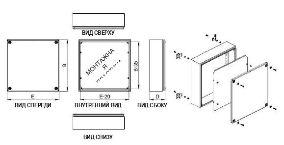 • Подходит для установки мини выключателей и счетчиков и розеток и прочего оборудования ХАРАКТЕРИСТИКИ Бренд- Cetinkaya Pano Тип монтажа –навесной Ширина -200 мм Высота-200 мм Глубина- 120 мм Основной материал- Металл Температура использования от -25 до + 60 ° C Степень защиты (IP)-IP54 Упаковка- 1 штука Толщина металла- 1,2 мм Ударопрочность- IK 10 В комплекте оцинкованная монтажная пластина Цветовая палитра-RAL 7035 серый Материал подкладки в крышке- Долговечный полеуретан Тип продукта-монтажная коробка Глухая крышка Огнестойкость - более 650 ° C Страна производства- Турция
